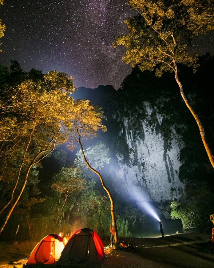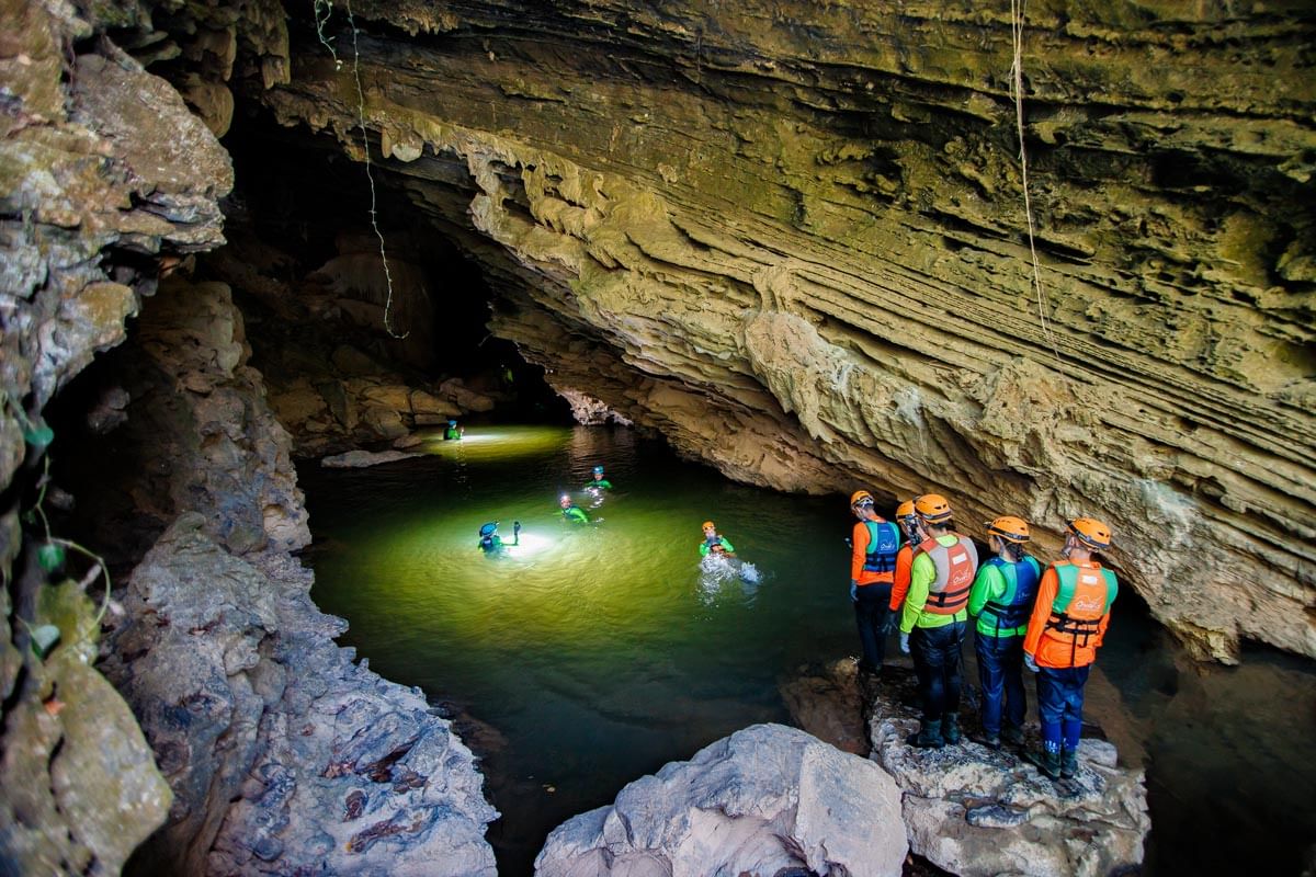 Trekking will bring you to an unaffected ancient jungle and along with buffalo fields. Enter a mysterious cave entrance, swim through different underground rivers and be surprised by the breathtaking limestone mountains, looming, stalagmites and stalactites. Make your way through deep, cool underground rivers, river valleys and more. Not to mention sleeping in hammocks, accompanied by campfires and butterflies. This is the Tu Lan Cave 4 days Experience in a nutshell.