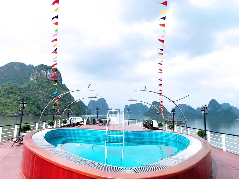 Embark on Aspira Cruise, a unique overnight cruise in Lan Ha Bay with 22 cabins in total. Experience royal elegance and utmost relaxation in fully-equipped cabins with a private balcony and personal bathtub. By booking this Lan Ha Bay luxury cruise, you'll feel the regal atmosphere in the swimming pool, spa, gym, dining, and panoramic bar.