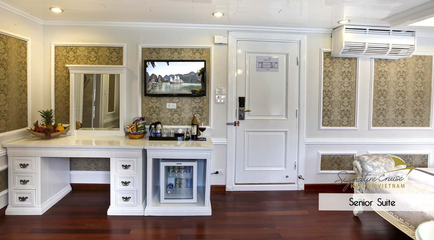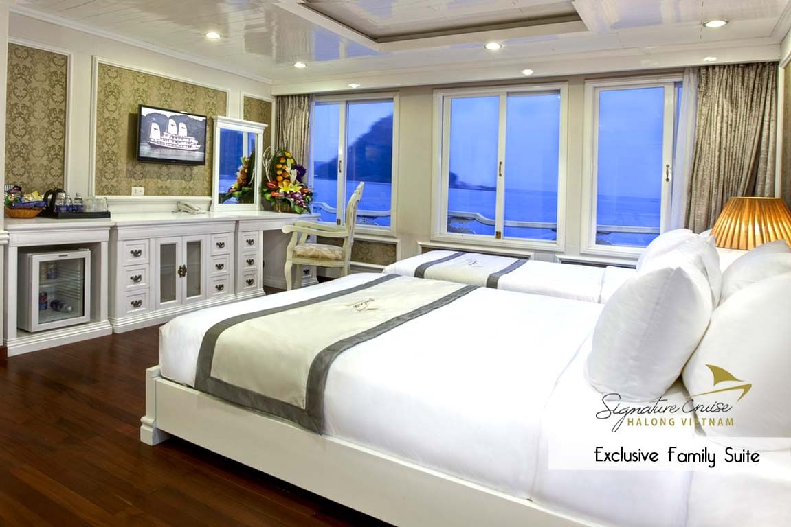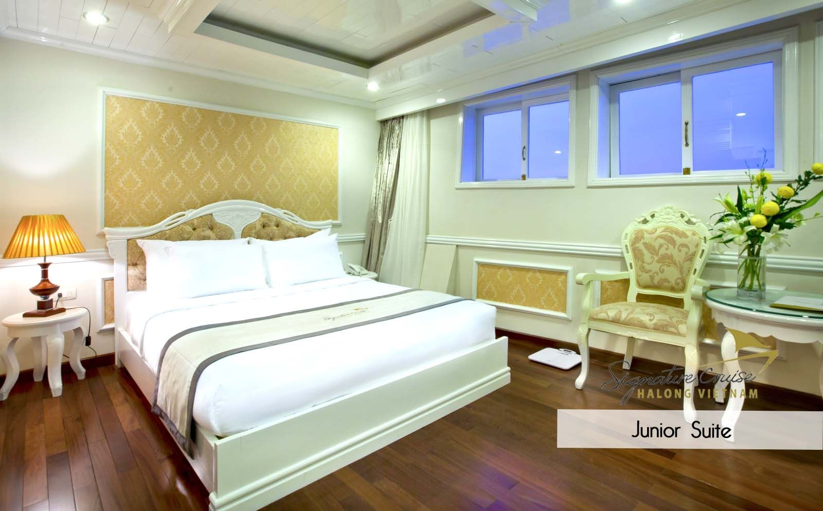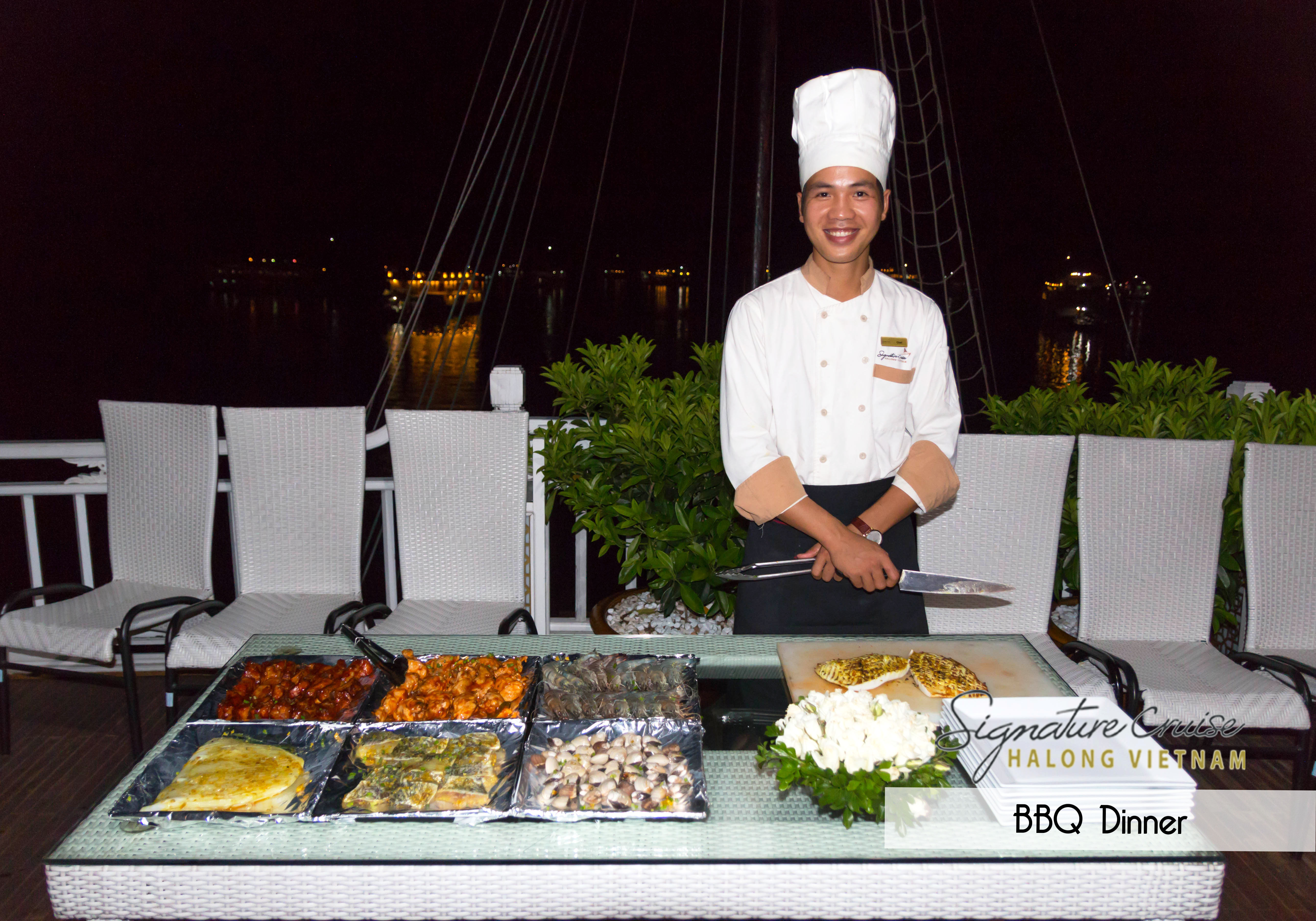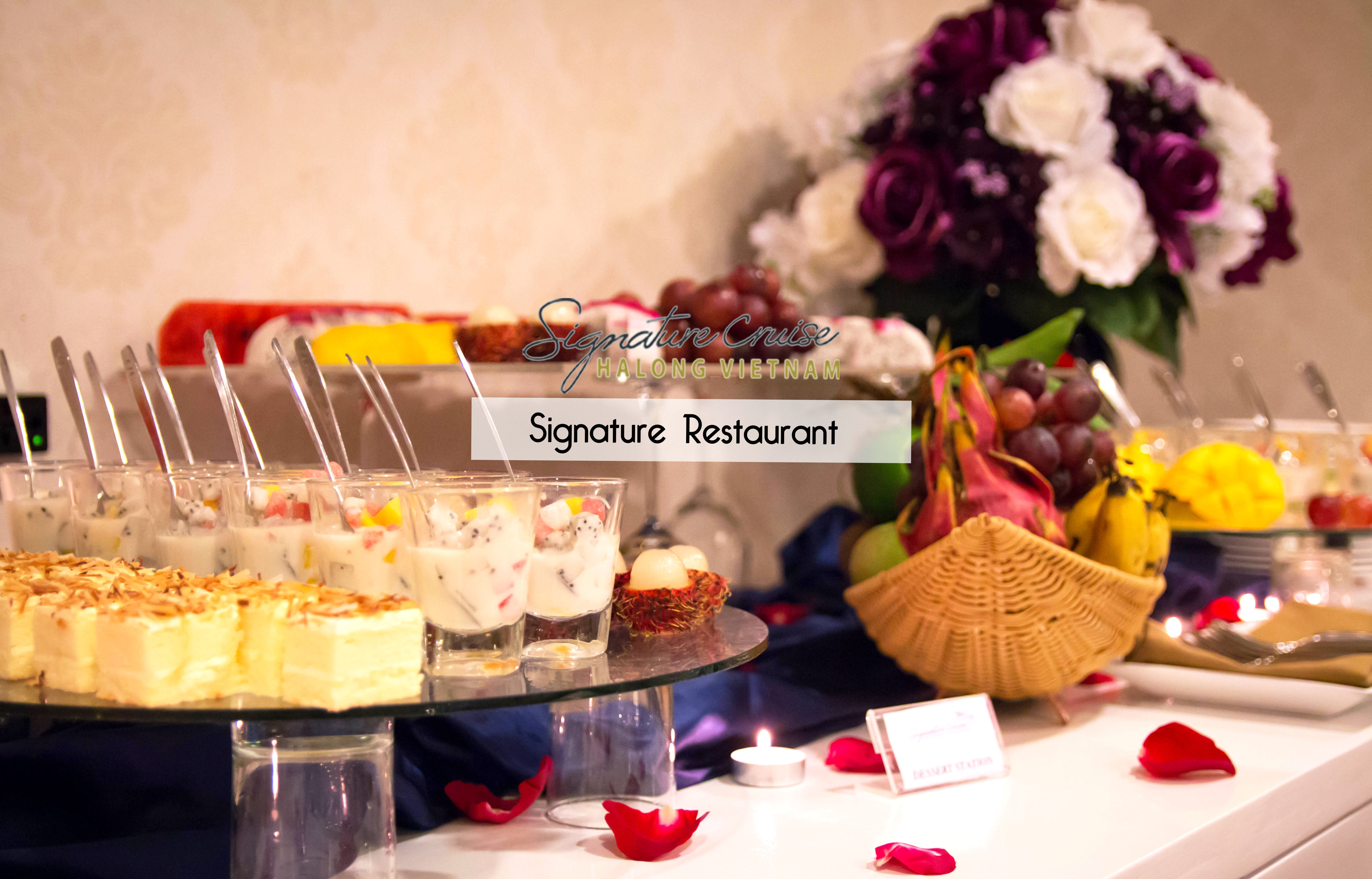 At Signature Halong Cruise, we take pride in offering high-quality facilities and special services to ensure your utmost satisfaction. Prepare to explore the breathtaking landscapes and visit spectacular locations around Halong Bay and Bai Tu Long Bay. Delight your taste buds with tantalizing dishes prepared by our skilled chef and culinary team, featuring fresh seafood, delicious Vietnamese specialties, and international cuisine.