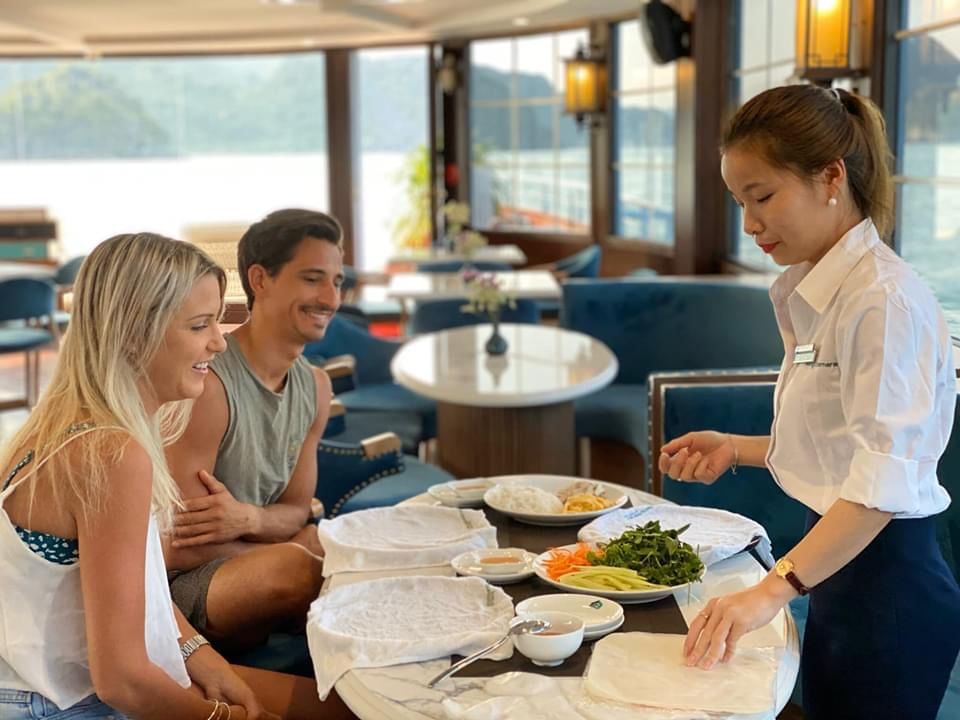 Instead of carrying everything all along on board, you can just choose the necessities and use smaller suitcases for your Halong cruise, and leave the large ones in your Hanoi hotel or at our office. It will surely be more convenient for you to move around.