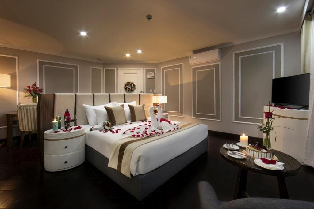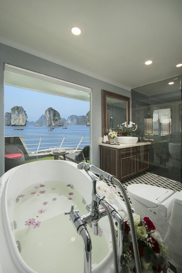 18 cabin of different types is sophisticatedly and artistically designed to bring out the most memorable experience for voyagers. While you are aboard your 5-star Halong Bay overnight cruise, you can bask in the lap of luxury and enjoy the entertainment and facilities offered on board, or you can relax on the sundeck with a refreshing drink and watch the magical scenery pass you by majestically. The bright blue sea, clear skies, jungle topped limestone islands, and peaceful tranquillity makes it a destination that you are not going to forget for a long time to come. For the keen anglers, you can enjoy a spot of night squid Fishing experience the serenity of Halong Bay by sea kayak, or take a lesson in Tai Chi and brush up on your focussing and relaxation techniques.