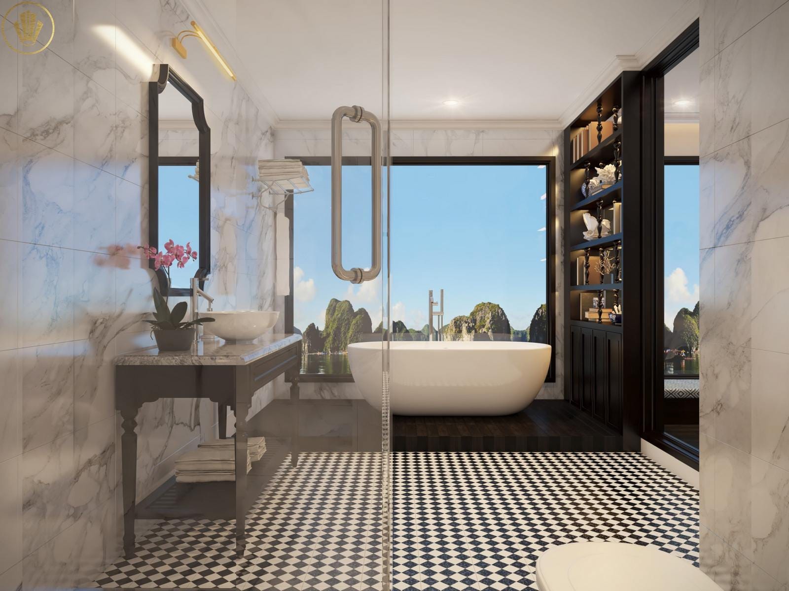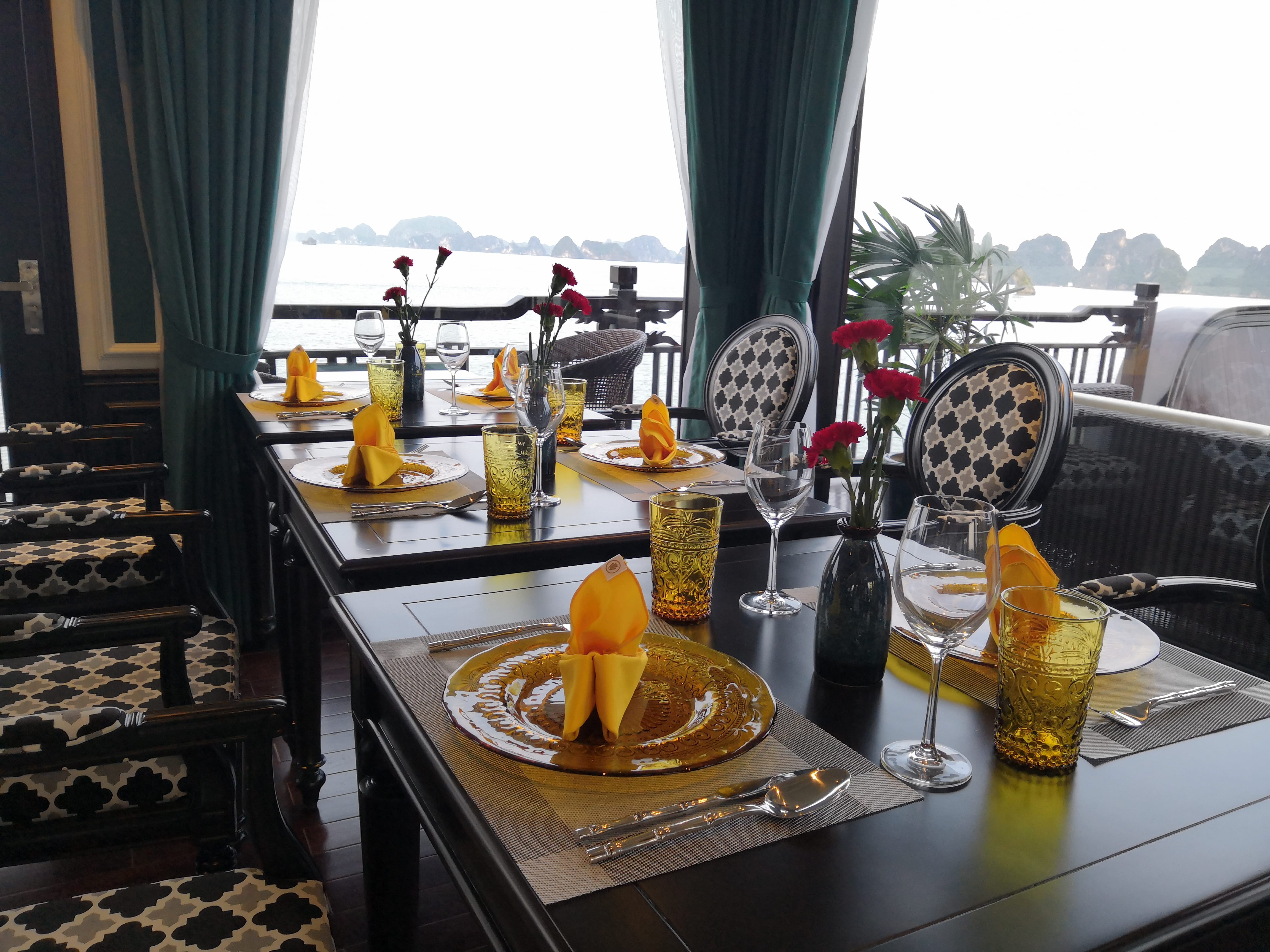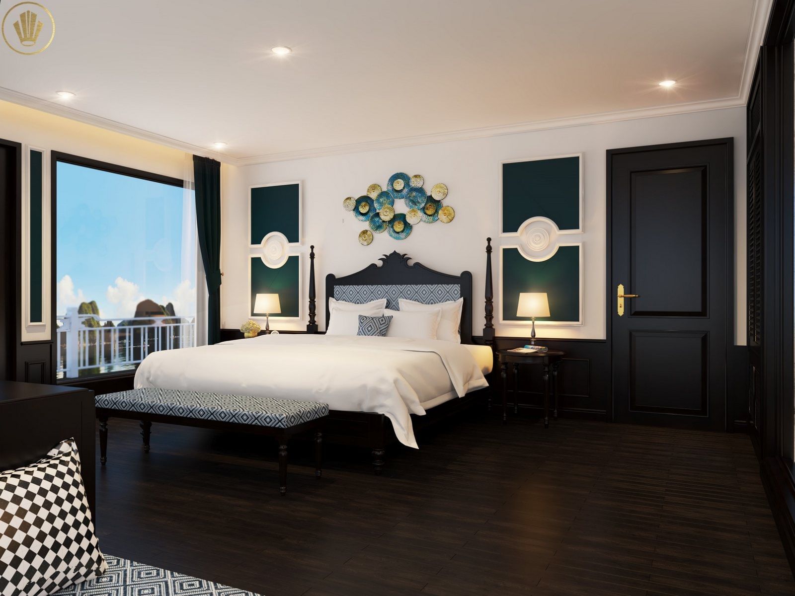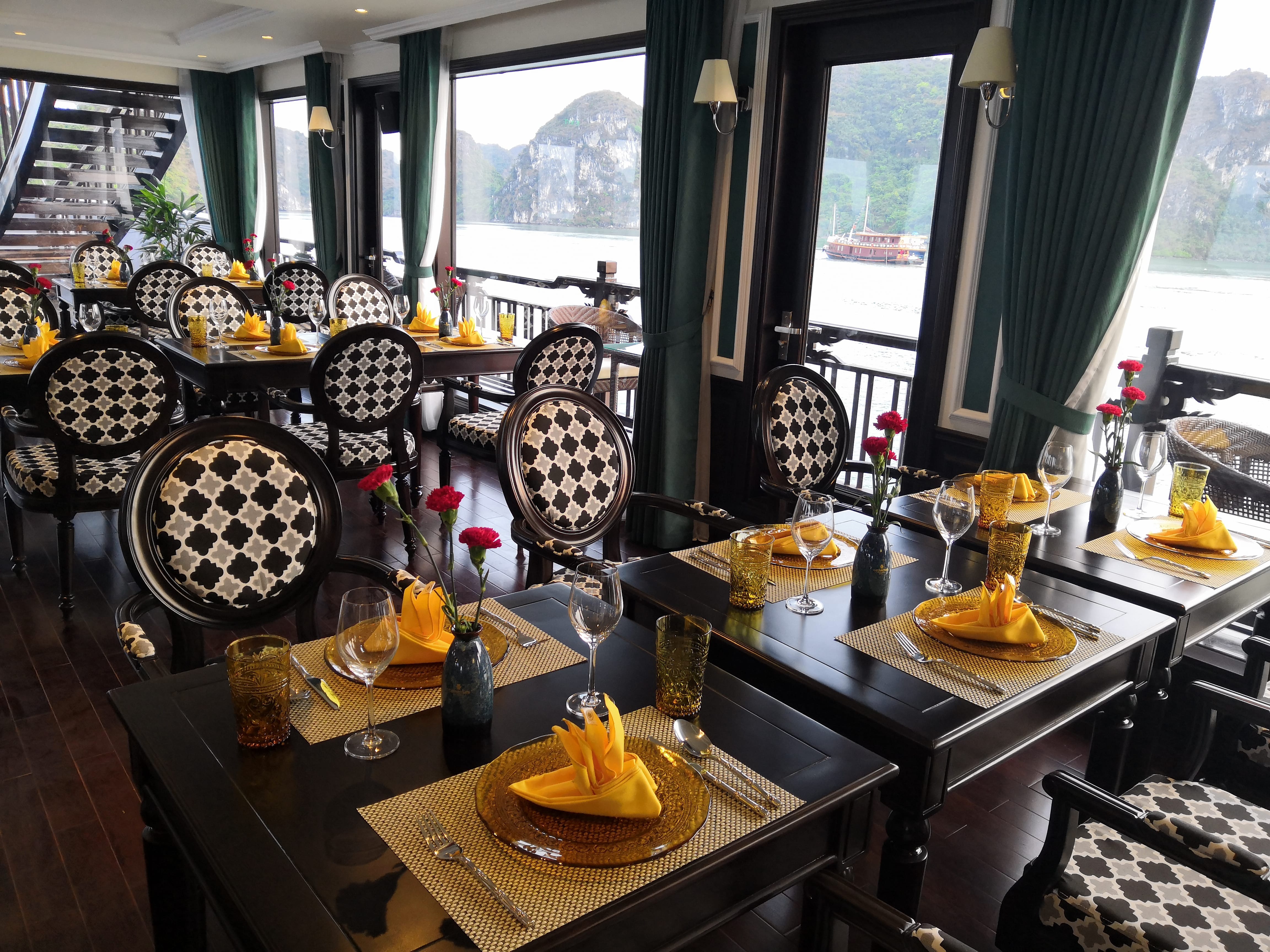 The Genesis Regal Cruise, new 5 star vessels on the bay with ultimately luxurious facilities. Be designed by traditional features, mixing with the luxury of neoclassic concept and inspired by the royal elegance of the French-Indochine style. With the amount of 20 bedrooms on a cruise, with a variety of room options as suites for the couple, family suites, connecting suites, regal terrace suites…that could cater well for all personal demand. All rooms are designed and equipped with private balcony, en-suite bathtub, full-frame windows, safety box, full HD satellite television along with detailed utilities and traditional meticulous decoration.