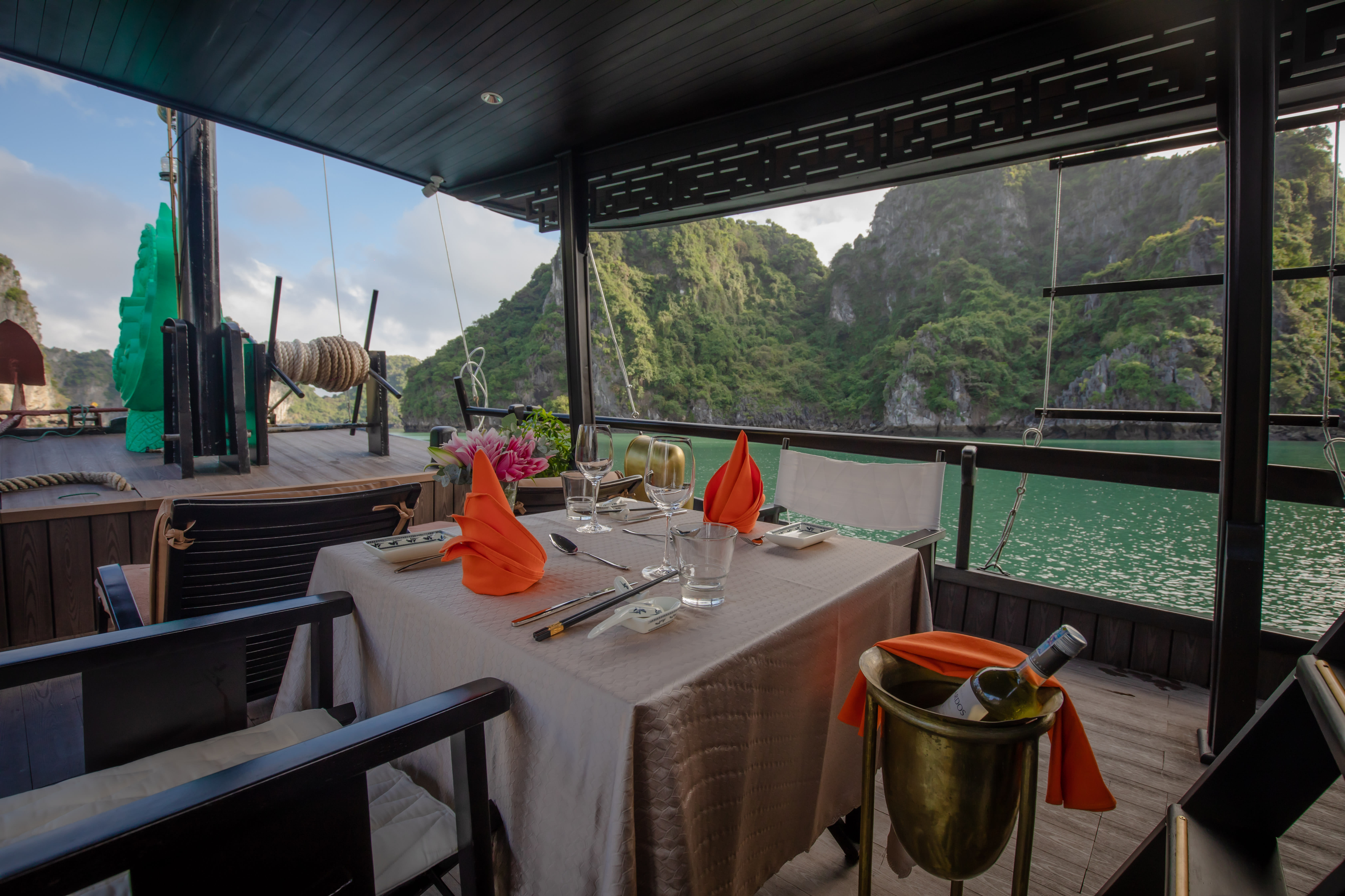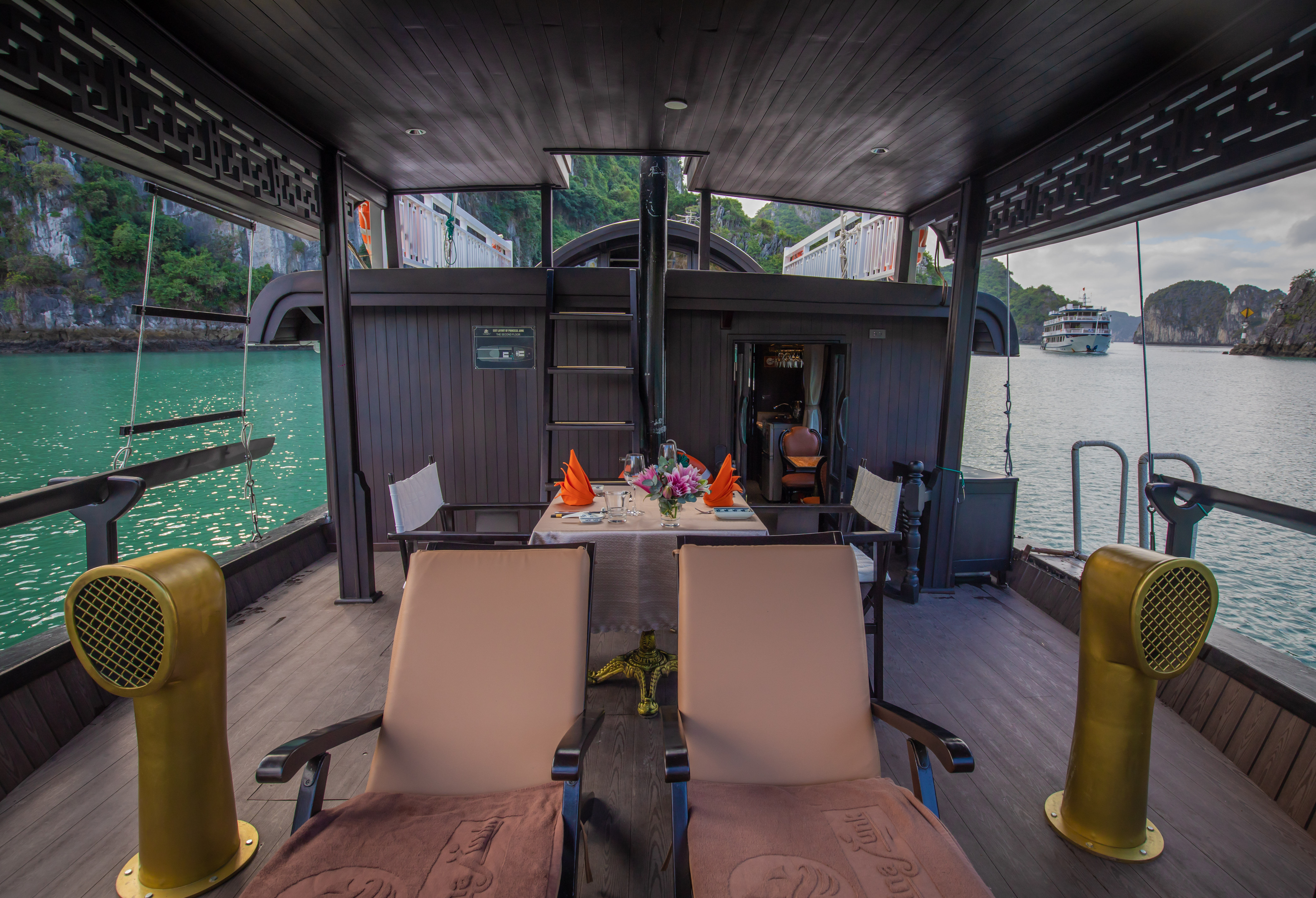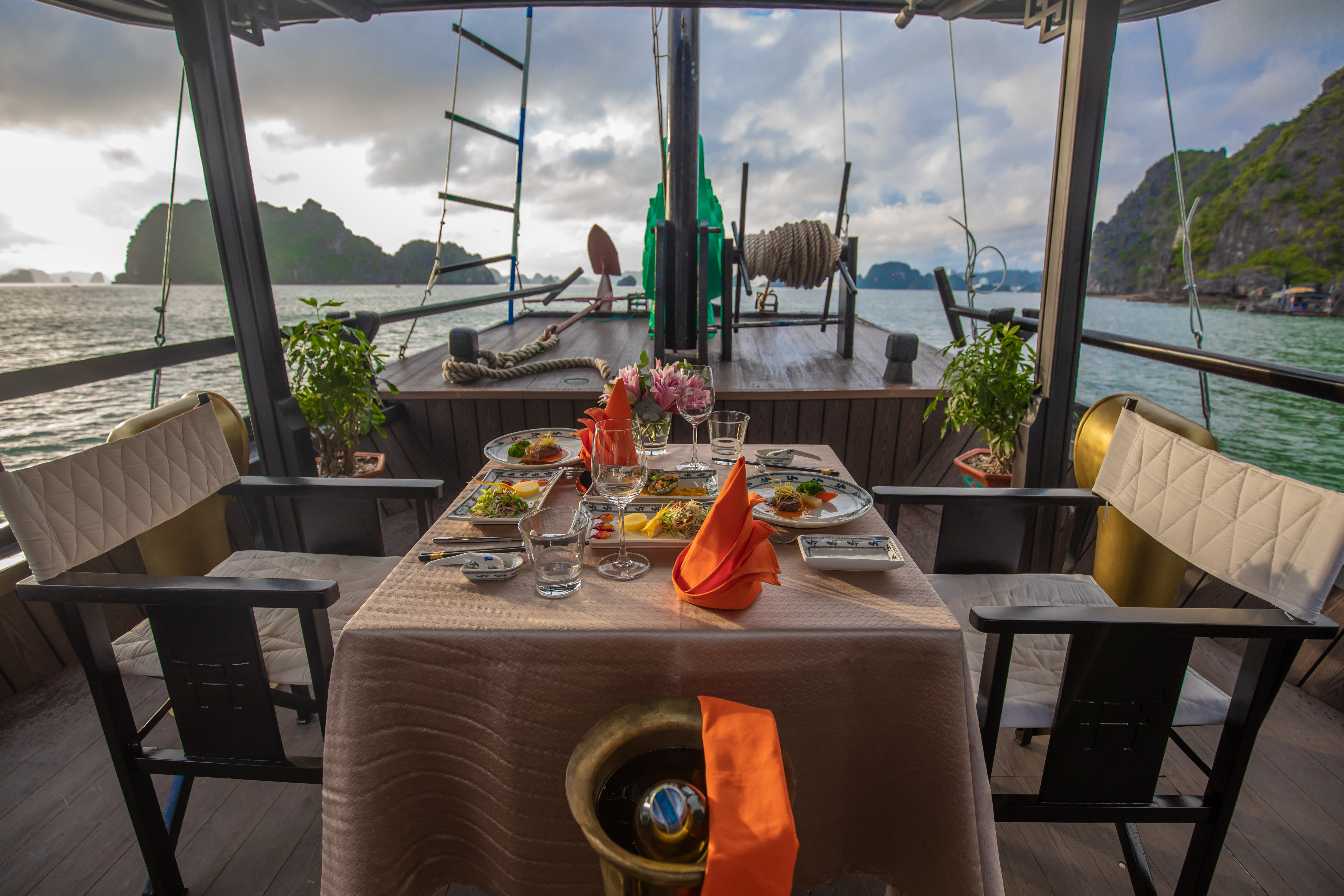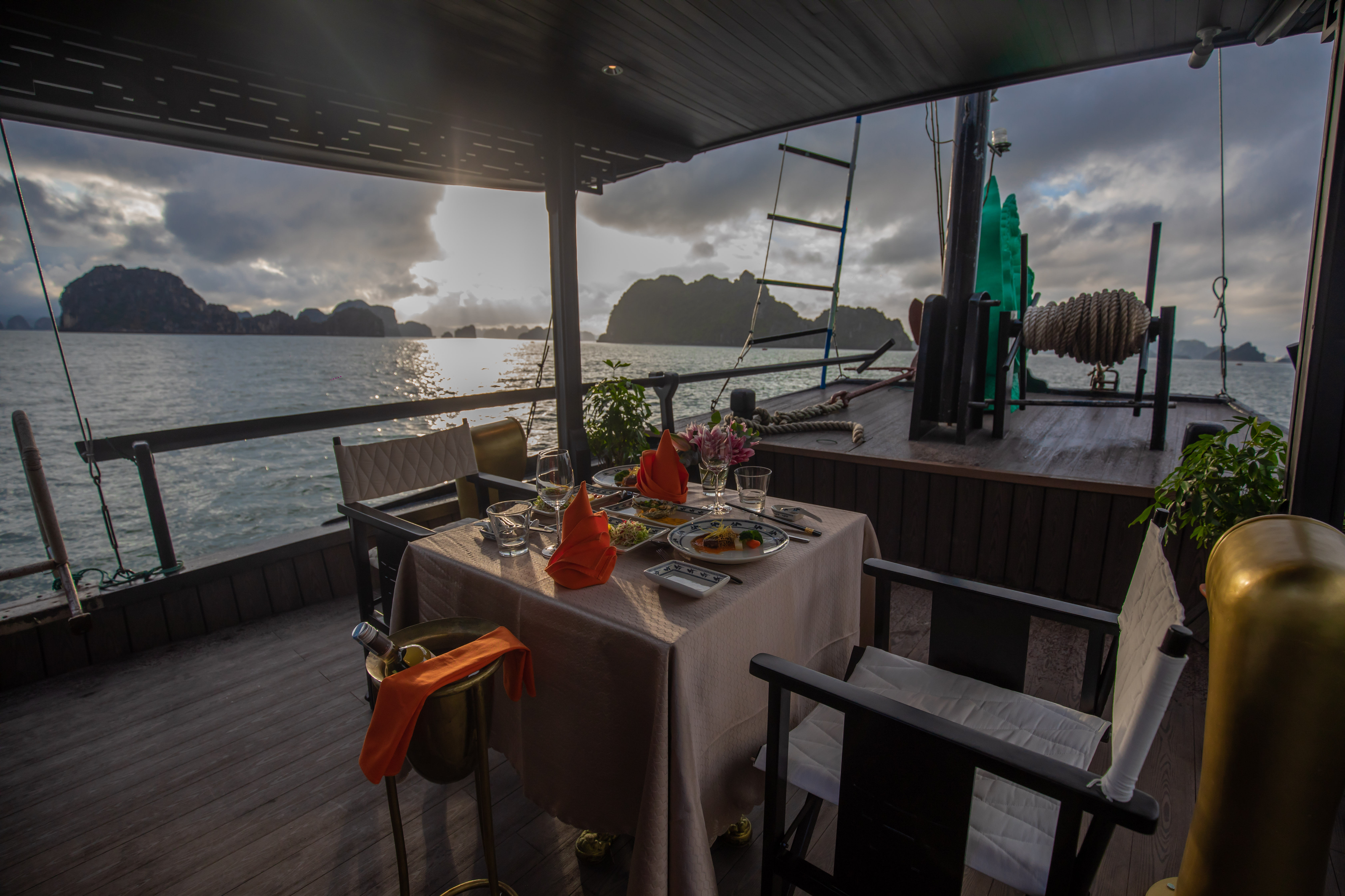 • Romantic Atmosphere: Whether it's a romantic getaway or a special celebration, the L' Amour Junk sets the stage for unforgettable moments against the backdrop of Bai Tu Long Bay's majestic scenery.