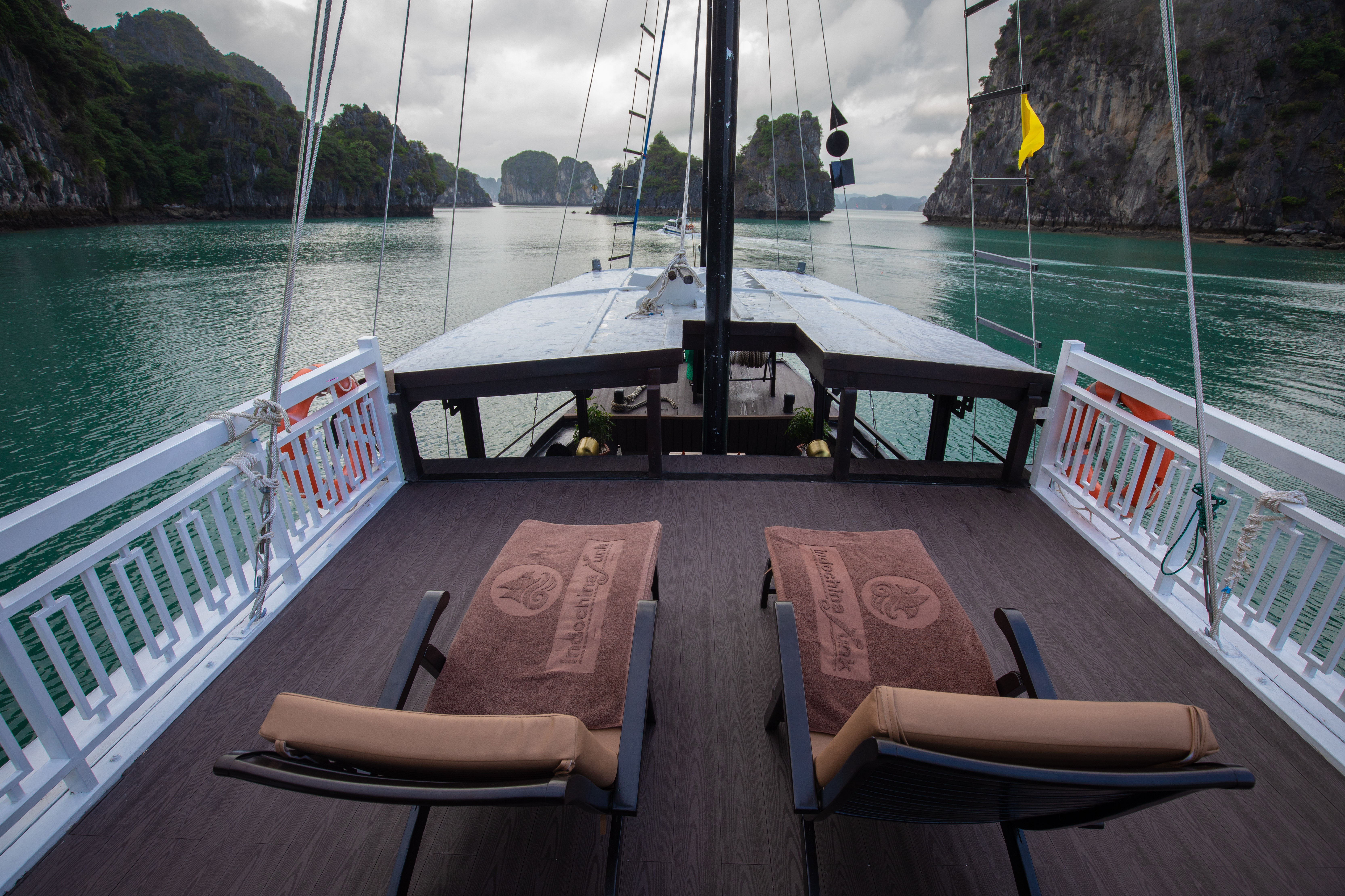 About L' Amour Junk:The L' Amour Junk is a masterpiece designed in the style of traditional sailing boats, offering an intimate and romantic escape for couples. As the first small deluxe one-cabin junk in Halong Bay, it promises an unparalleled experience.