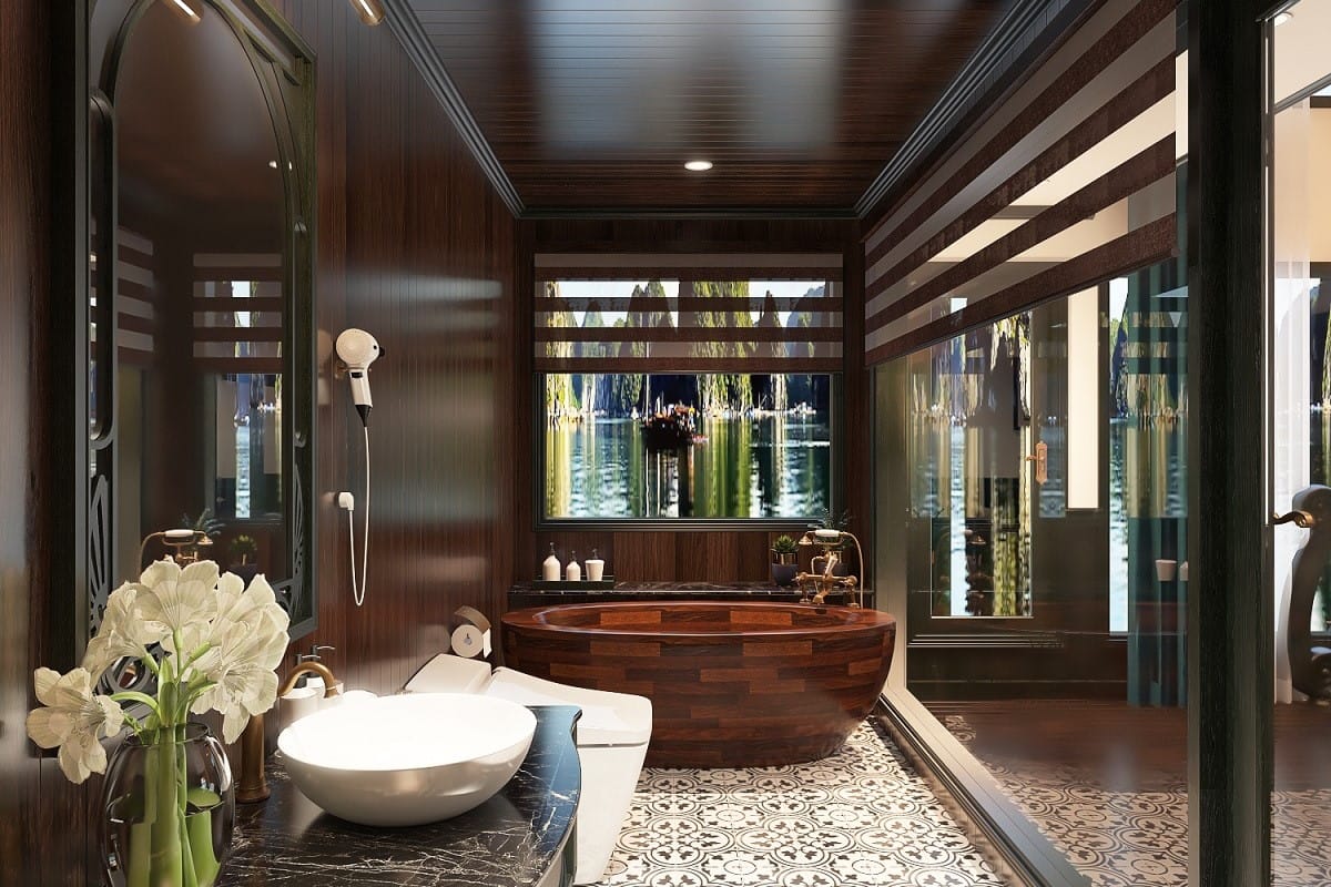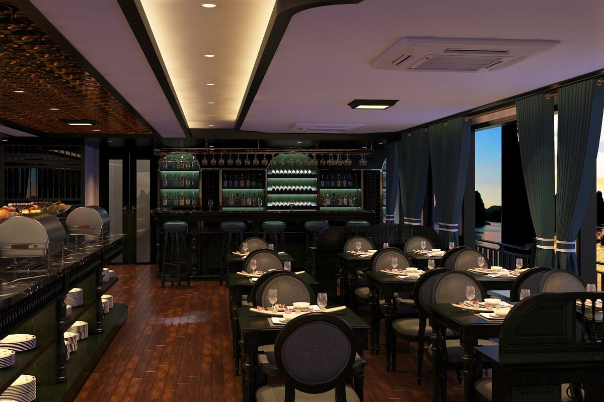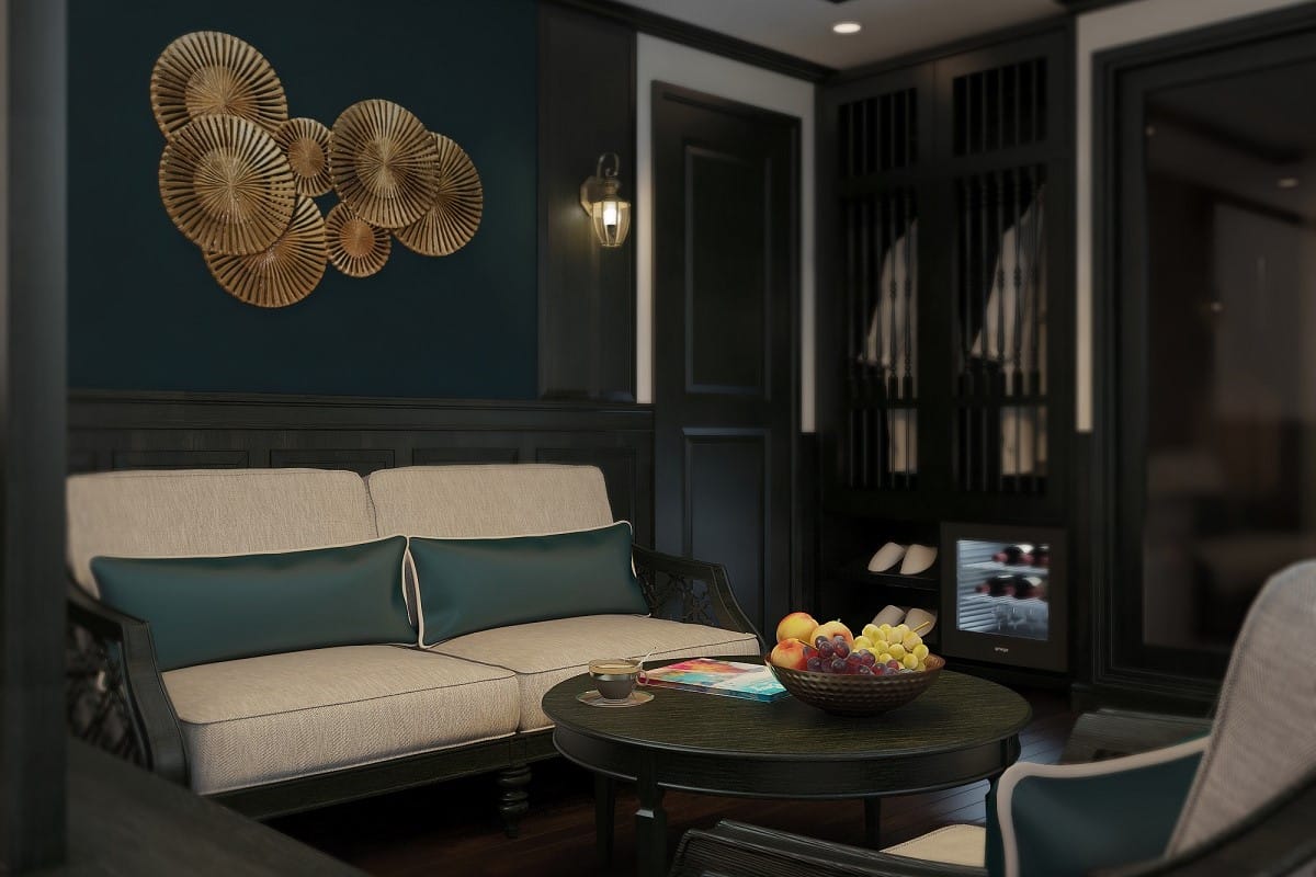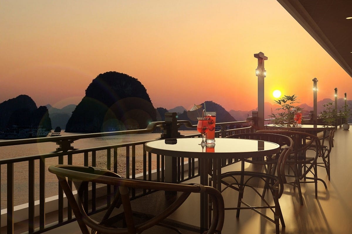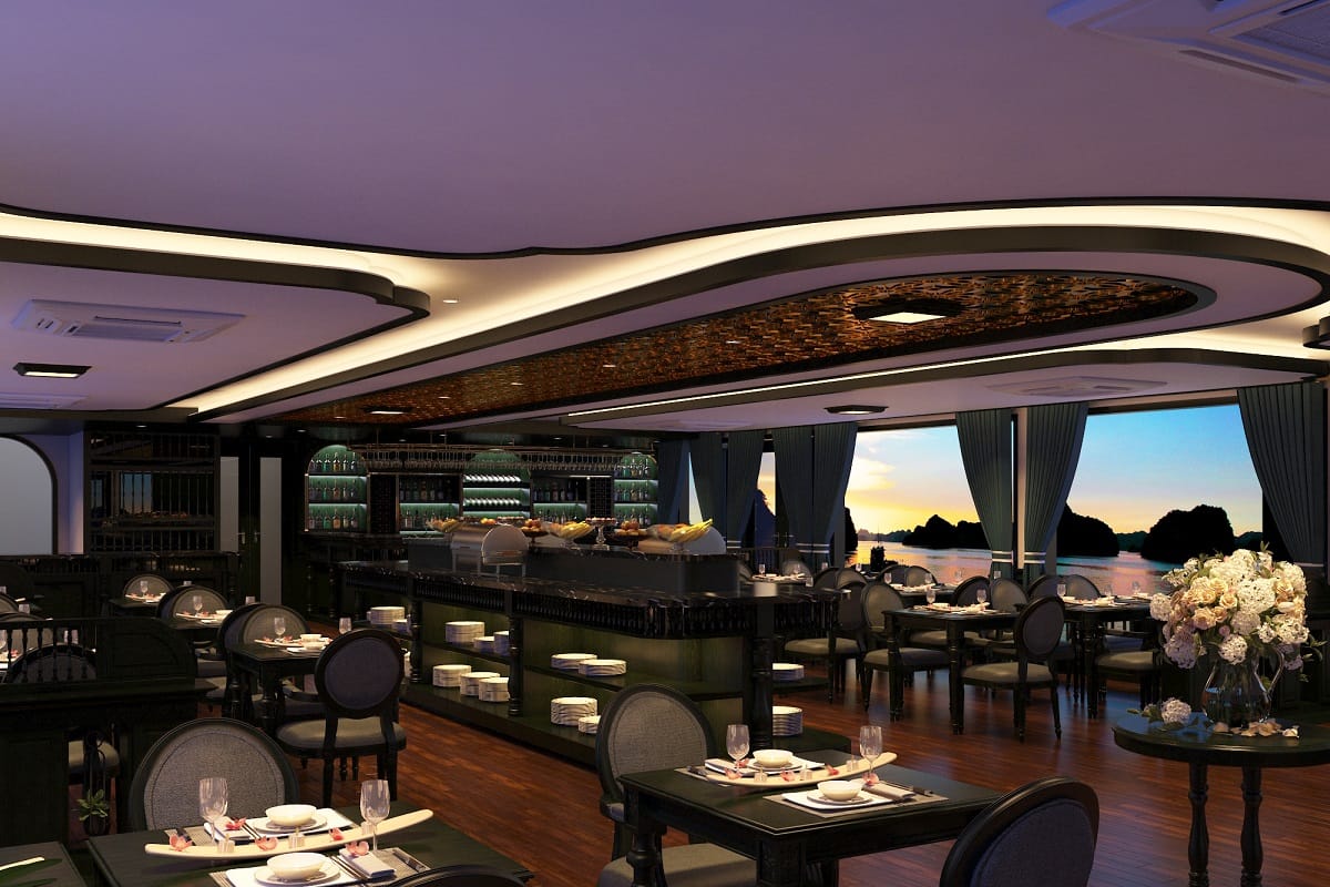 With a design reminiscent of colonial Indochina 1930 style, La Regina Grand Cruise offers a sophisticated and comfortable ambiance. The cruise features 27 spacious, air-conditioned suite cabins, each equipped with a full-length window and a private balcony, providing a spectacular panorama of the picturesque Lan Ha Bay seascape. The well-trained staff ensures gracious and attentive service, making every suite a beautiful and tranquil retreat.