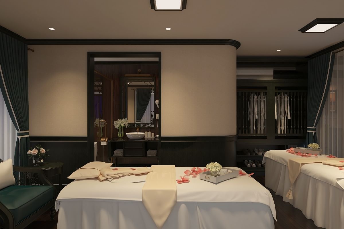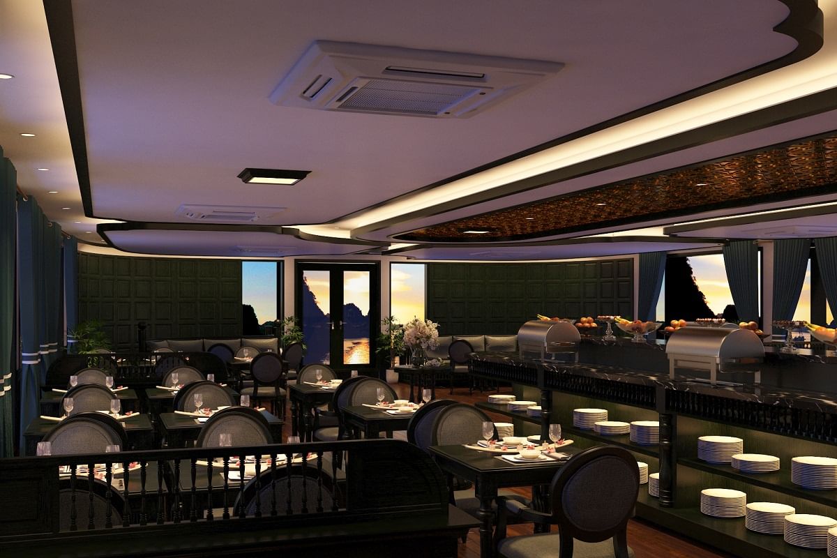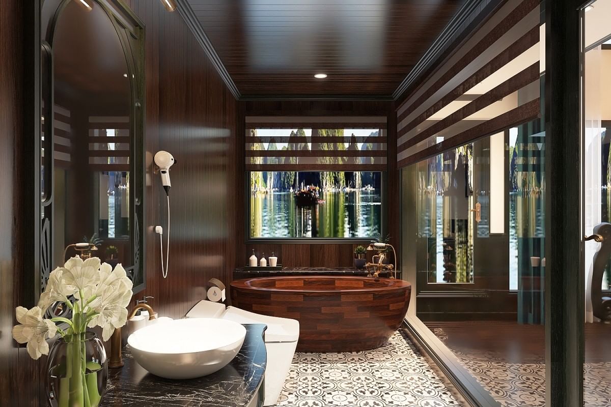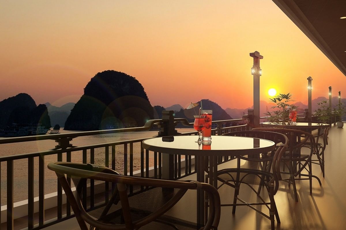 Designed with a nod to the colonial Indochina 1930 style, La Regina Grand features a sophisticated and comfortable ambiance. With 27 spacious, air-conditioned suite cabins boasting full-length windows and private balconies, the cruise offers a spectacular panorama of Lan Ha Bay's picturesque seascape. Our well-trained staff ensures gracious and attentive service. Each suite is a tranquil retreat, blending timeless elegance with modern conveniences and luxuries.