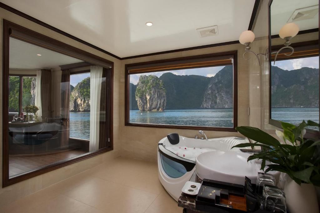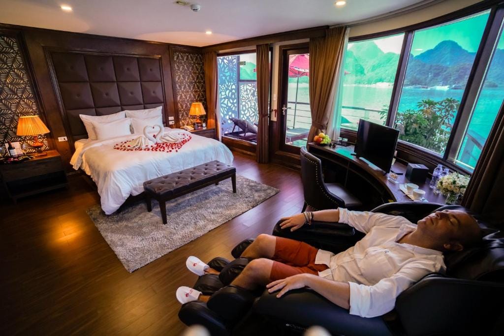 It is a perfect blend of the sophistication between the classic European form and the rustic essence of Vietnamese styling. Mon Chéri Cruises itself creates the difference with the tiny distinguished feature from its elegant design, luxury restaurant, the menu is up with careful consideration, 43 spacious cabins with a private balcony from 2 cruises bound to the spectacular view of Halong Bay and Lan Ha Bay and emerald ocean. Deeply immerse in the charm of the traditional music tone while enjoying dinner at the restaurant or find a place on the sundeck with a cocktail to taste the sweetness of peace in the evening is seen to be the best way to reward yourself the experience exquisite, the journey flawless.