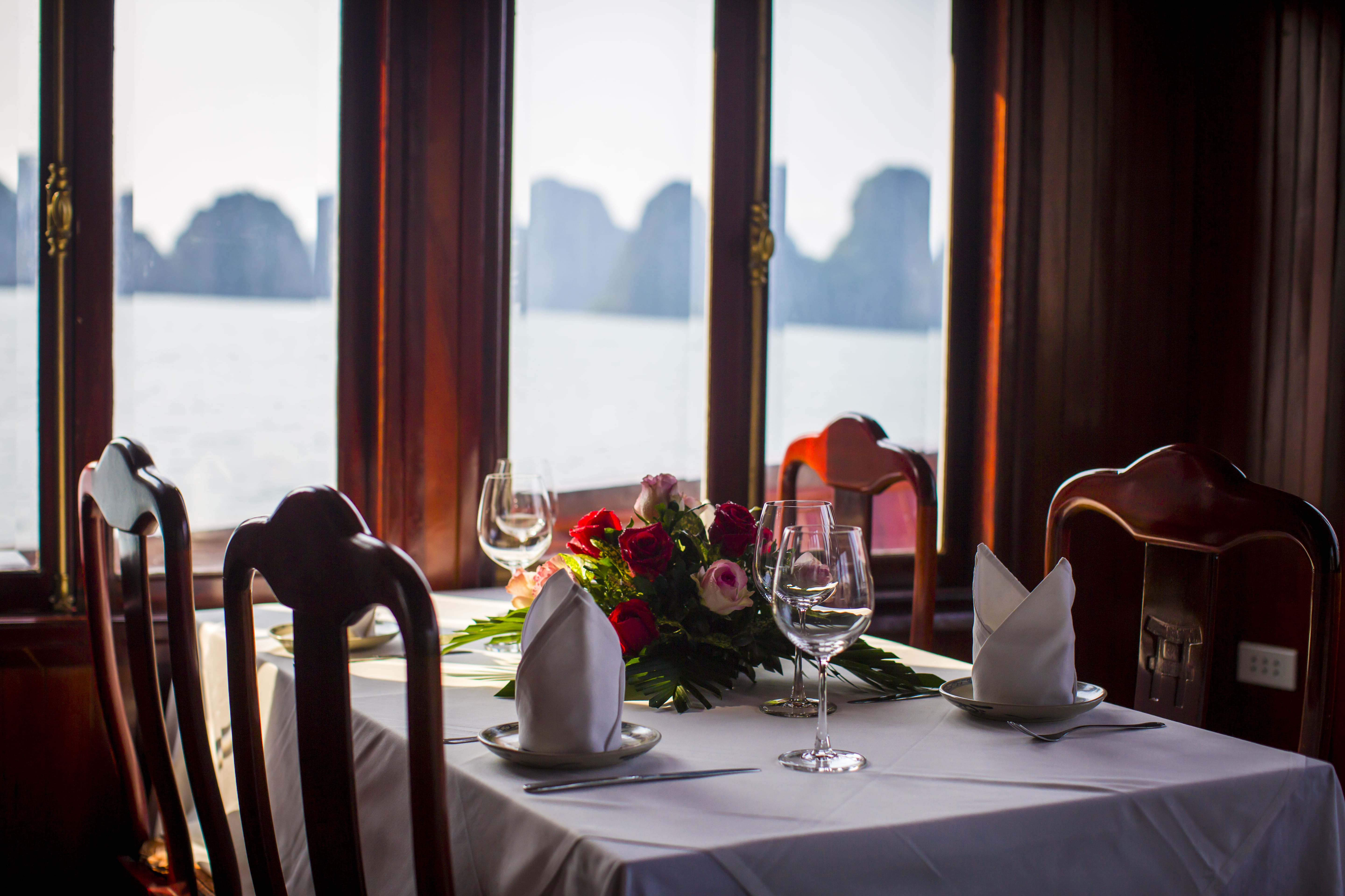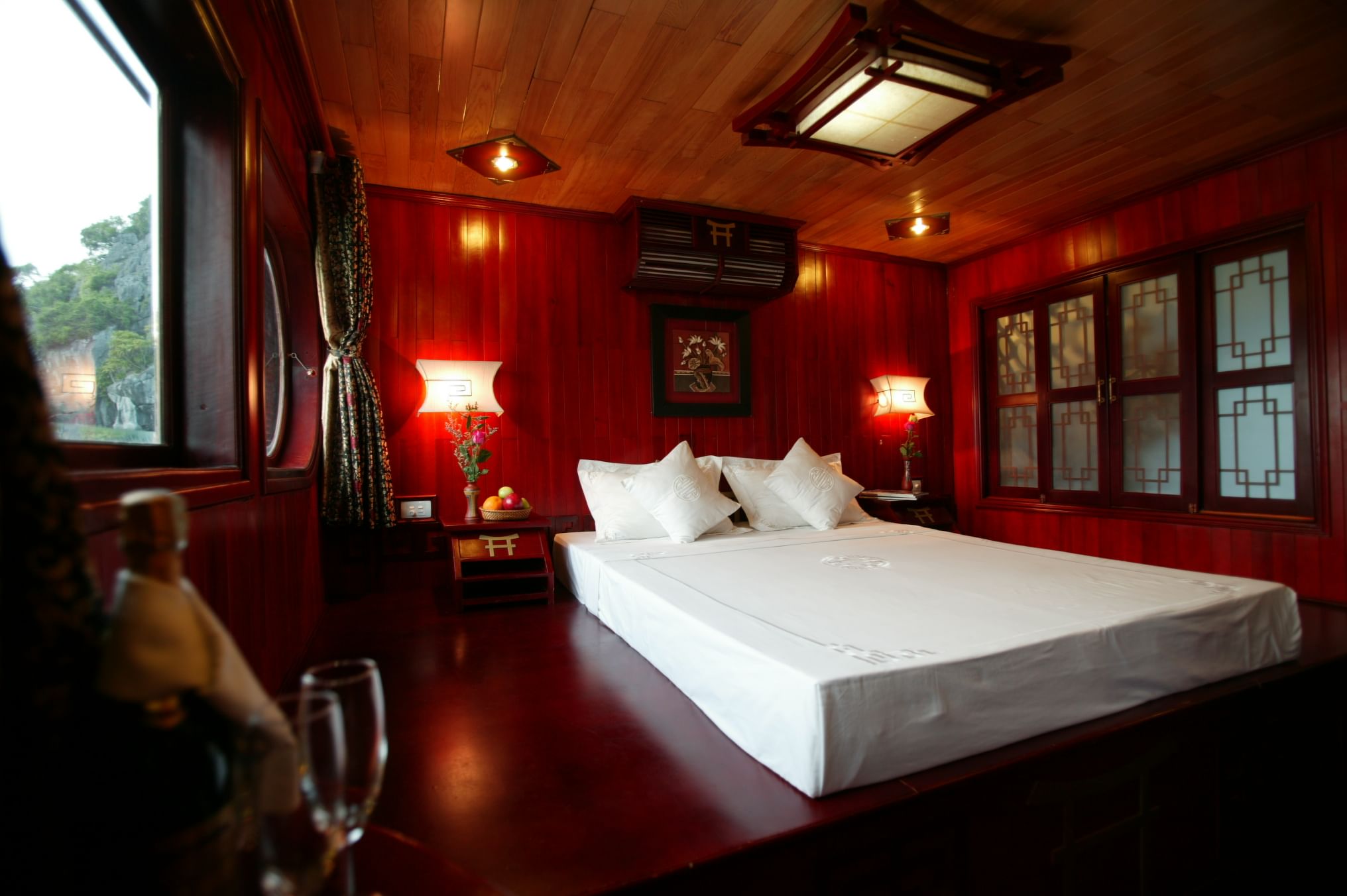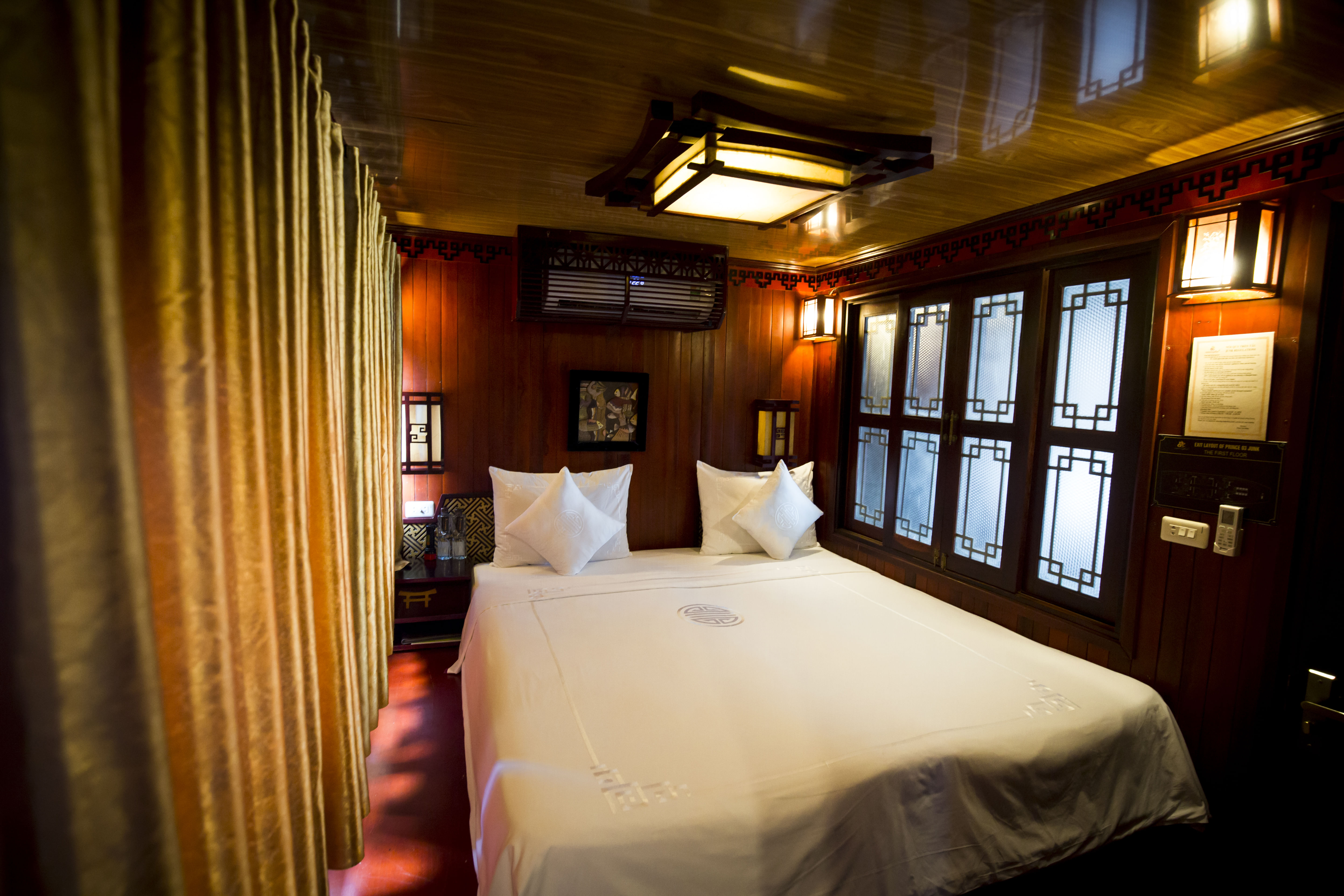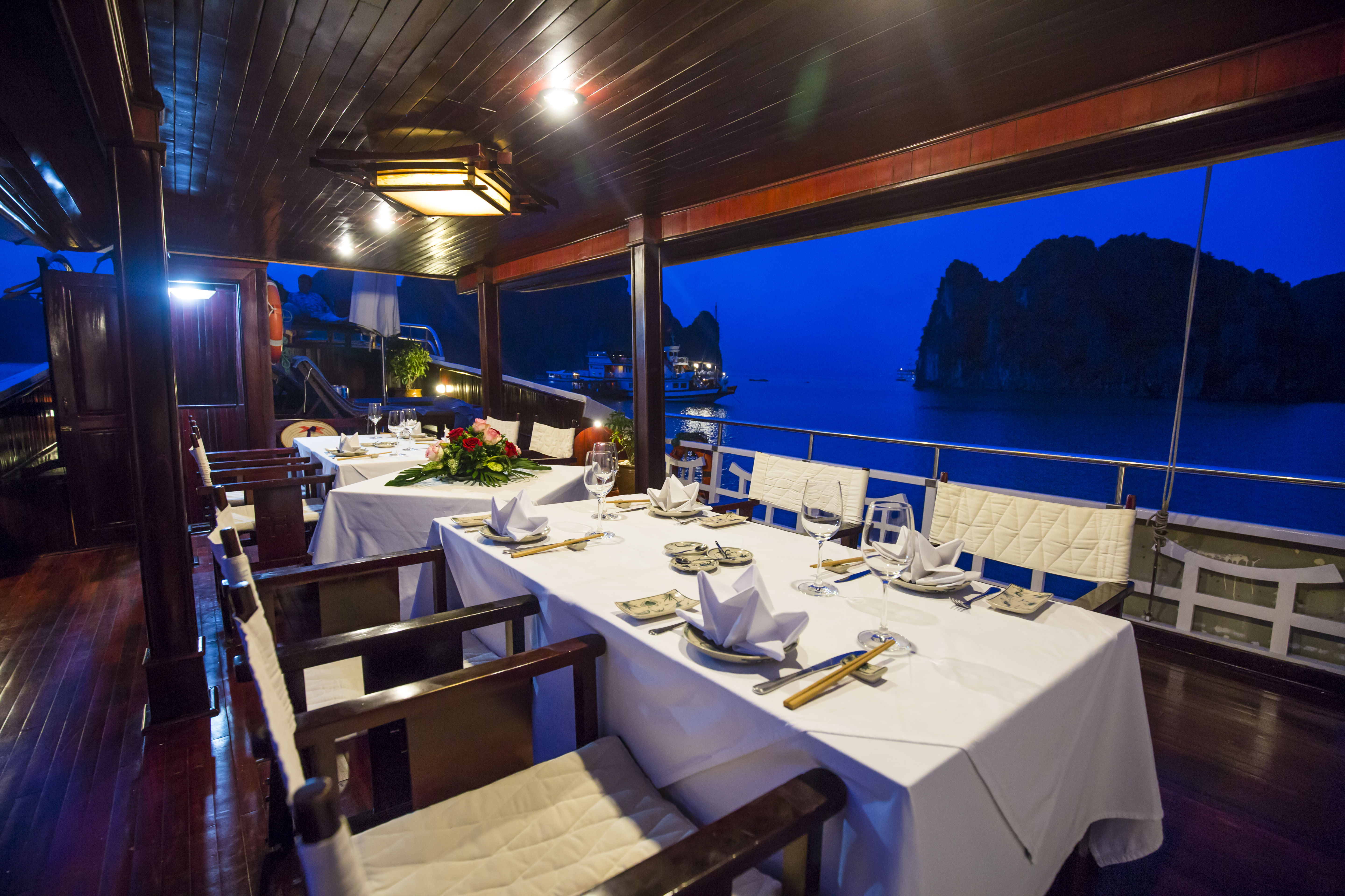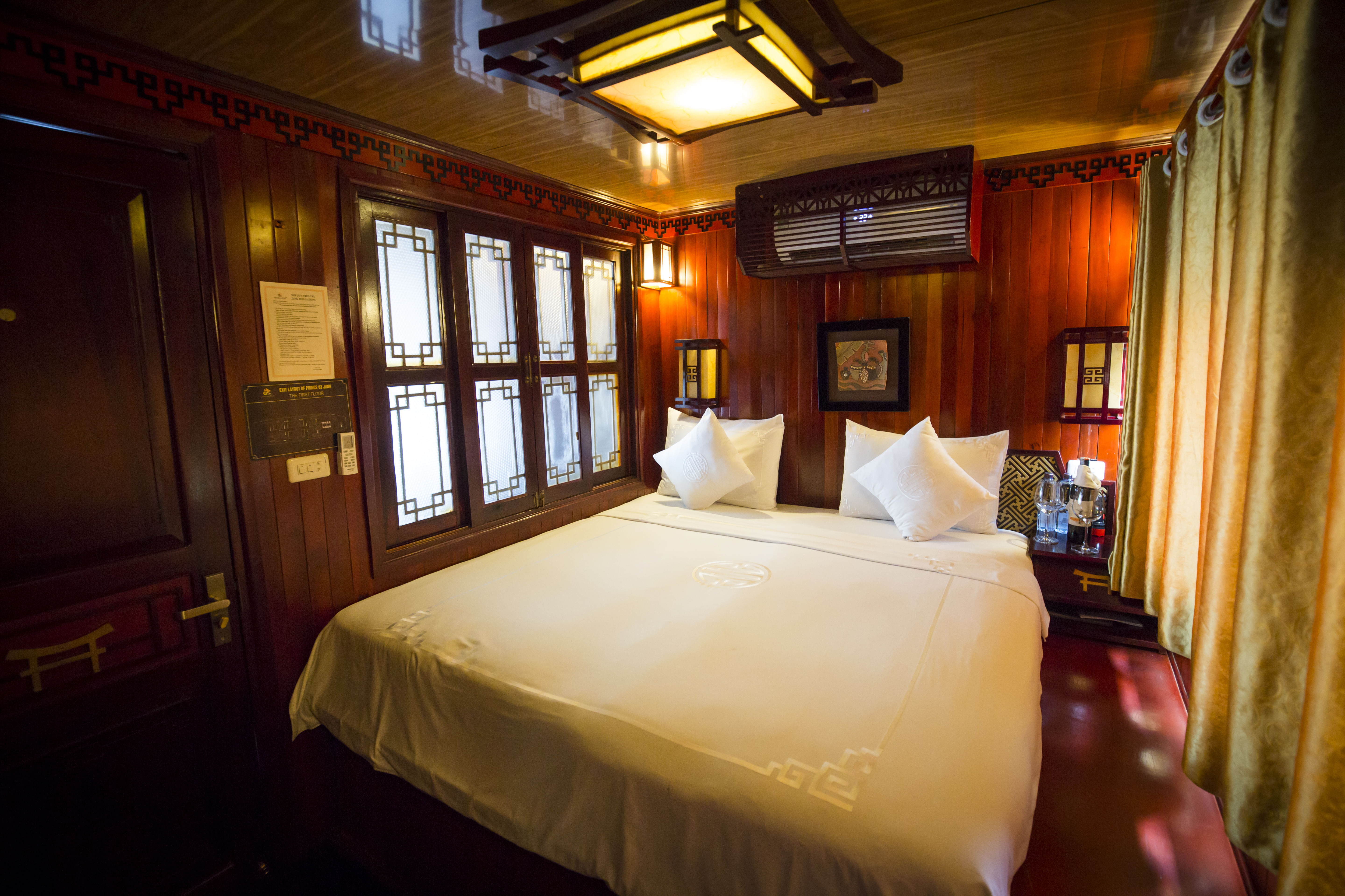• Authentic Experience: Immerse yourself in the rich culture and traditions of Vietnam with our traditional wooden boats and oriental-designed cabins, complete with large windows and en-suite bathrooms.