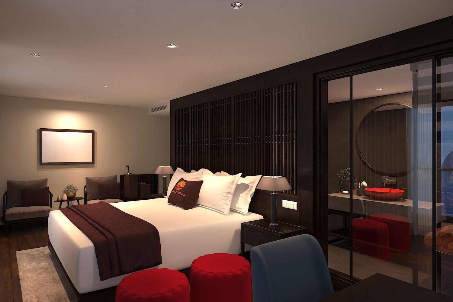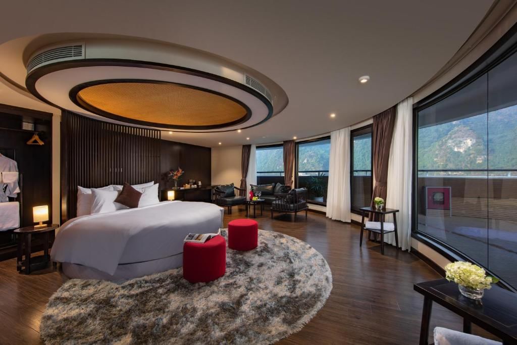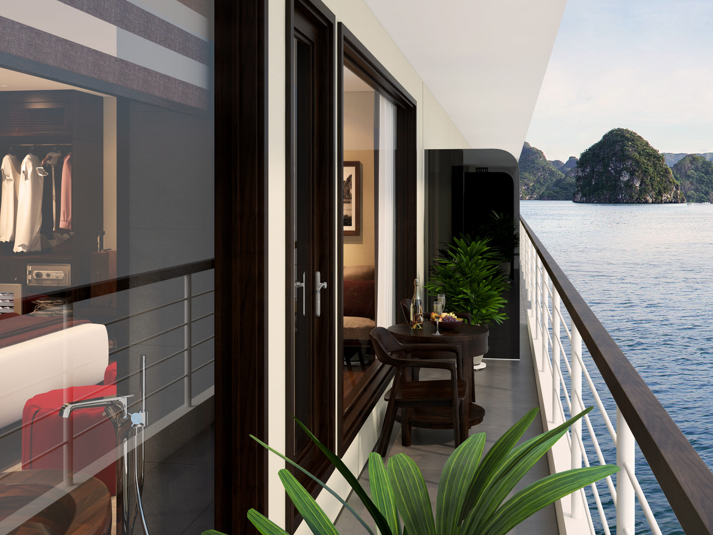 For those in pursuit of splendid experience in Halong Bay, Scarlet Pearl Cruise lies in the most preferable choices that satisfy all your expectations. With the high standard of a 5-star cruise line, Scarlet Pearl offers an exquisitely luxurious interior and comfortable exterior overwatching the magnificent views of Halong Bay. Scarlet Pearl has 23 cabins in total. It is unique in its commitment to sustainable, environmentally-sound luxury travel. All guest rooms include eco-friendly toiletries using natural ingredients, and the furnishings and furniture are sourced from within Vietnam wherever possible.