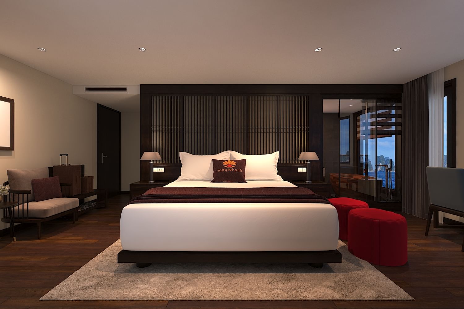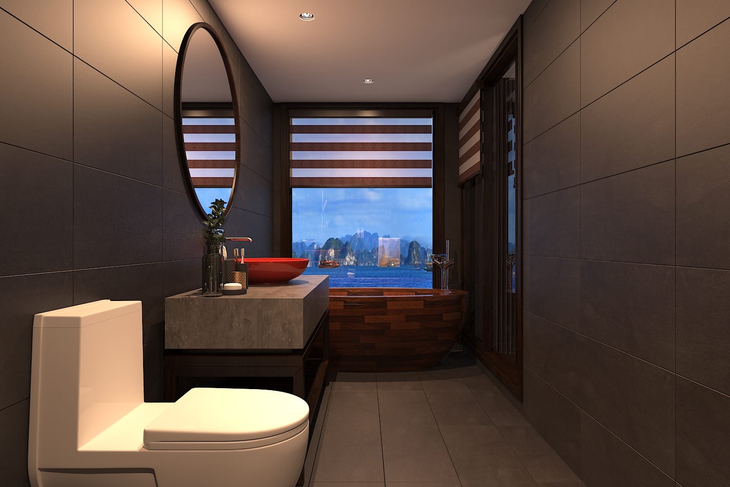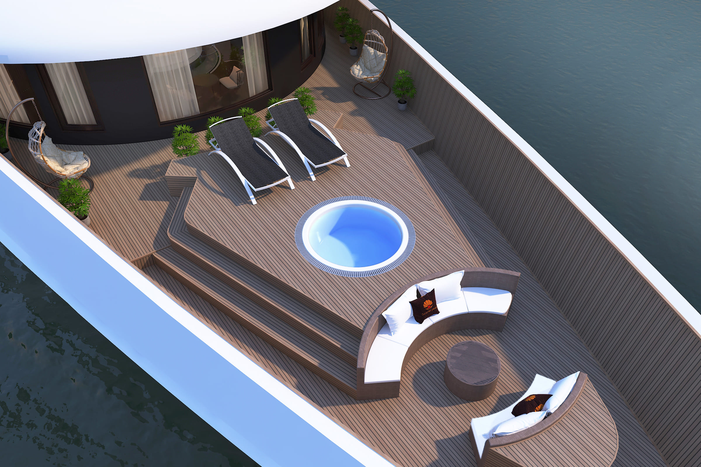 For those in pursuit of splendid experience in Halong Bay, Scarlet Pearl Cruise lies in the most preferable choices that satisfy all your expectations. With the high standard of a 5-star cruise line, Scarlet Pearl offers an exquisitely luxurious interior and comfortable exterior overwatching the magnificent views of Halong Bay. Scarlet Pearl has 23 cabins in total. It is unique in its commitment to sustainable, environmentally-sound luxury travel. All guest rooms include eco-friendly toiletries using natural ingredients, and the furnishings and furniture are sourced from within Vietnam wherever possible.