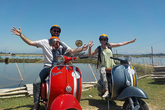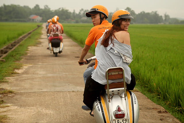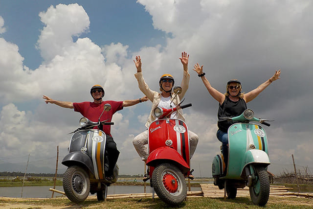 Explore the roads less traveled. Escape the old town and take back roads to the beautiful islands and villages surrounding Hoi An riding pillion on a vintage Vespa. Explore the magnificent countryside, meet local families and experience the colorful village and riverside life in remote communities.