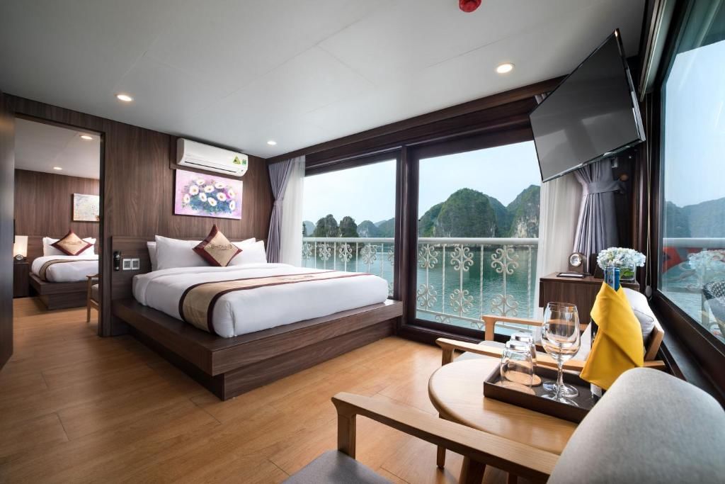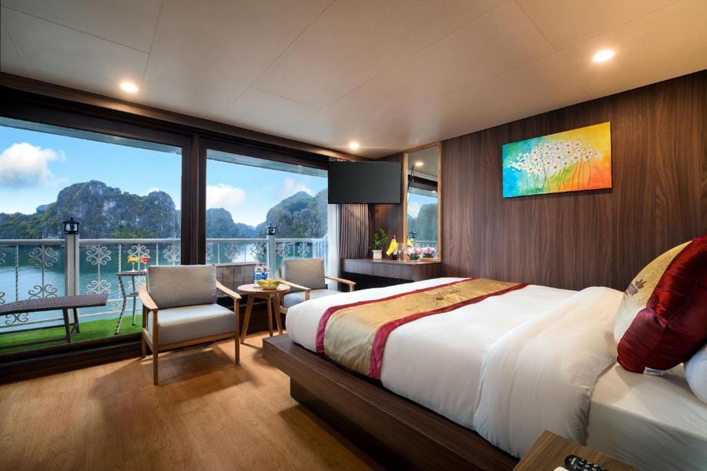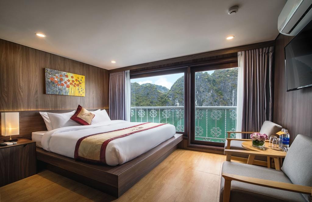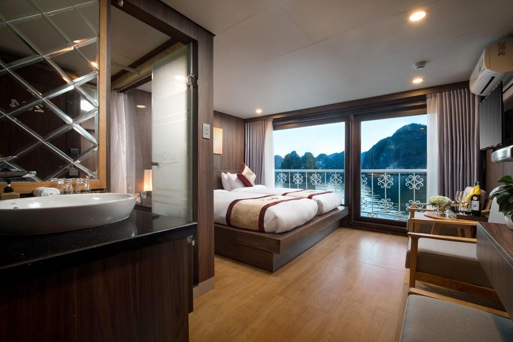 20 Luxurious and well-furnished cabins with full ocean view windows from which you can savour yourself in the beauty of Halong Bay - Lan Ha Bay. We design the cruise with limited cabin quantity in generous space that offers our guests a relaxing atmosphere on board.